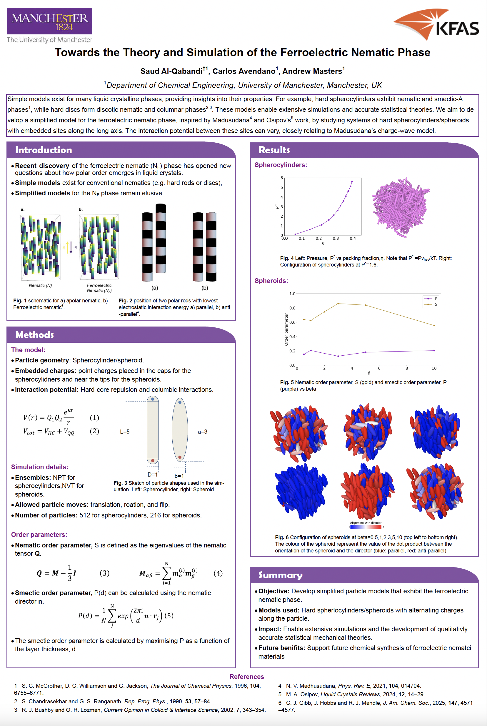 The Kuwait Cultural Office is proud to highlight the achievement of Saud Al-Qabandi, PhD student at the University of Manchester, who presented his research poster at the British Liquid Crystal Society Annual Meeting on 8 April 2025.