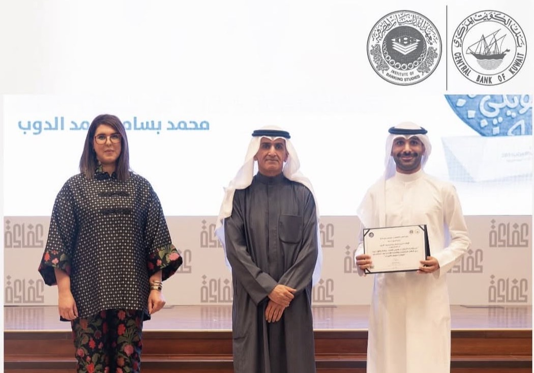 Mr Aldoub was awarded second place at the national level in the 2024 Kuwaiti Economic Student Award. The award ceremony was held at the Central Bank of Kuwait, where he presented his research in the presence of the Governor of the Central Bank of Kuwait and the Head of the Institute of Banking Studies.